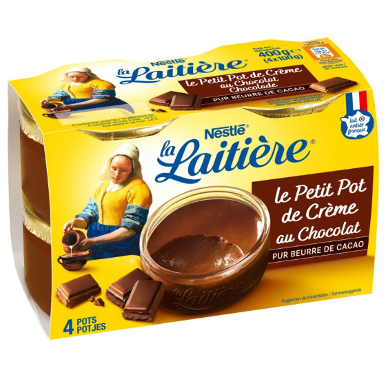 Ingredients: _Lait_ entier (32,8%), babeurre (_lait_), crème (_lait_) (16,1%), sucre, eau, amidon modifié, poudre de _lait_ écrémé, extrait de café (0,7%), amidon, arôme naturel de café, colorant (caramel ordinaire), gélatine, épaississants (carraghénanes, farine de graines de caroube), arôme, correcteur d'acidité (hydroxyde de sodium)