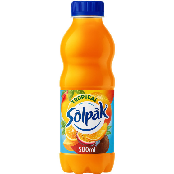 Ingrédients:Jus de fruits à base de concentrés (orange, mandarine, ananas, citron), purées de fruits (mangue, banane, passion), eau, sucre.