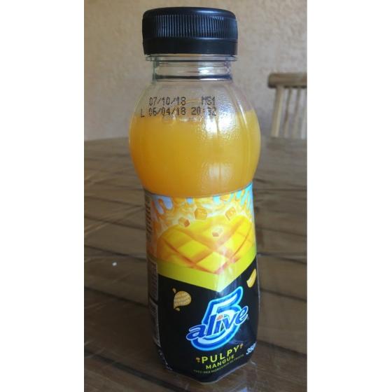 Ingrédients:Eau de source 80%, jus de fruits à base de concentrés 12% (orange 6,6%, pomme 5,3%, fruit de la passion 0,1%, mangue 0,07%), sucre 7%, acidifiants : acide citrique et acide malique, arômes, colorants : lutéine, acide carminique et extrait de paprika, antioxydant : acide ascorbique et alpha-tocophérol, stabilisant : gomme d'acacia,