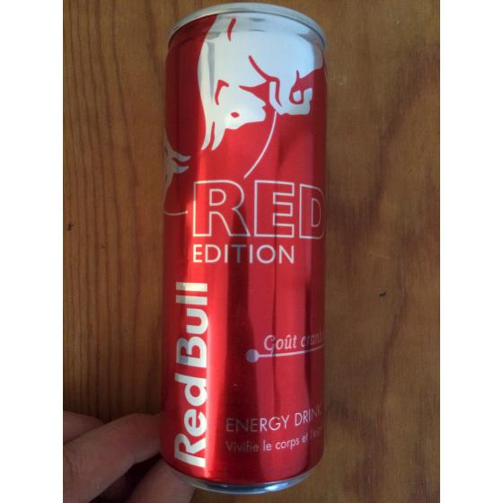 Ingrédients:Ecu gazéifiée, saccharose, glucose, acidifiant (acide citrique), taurine (0,4%), correcteur d'acidité (citrates de sodium), caféine (0,03%), vitamines (niacine, acide pantothénique, B6, B12), arômes, colorants (anthocyanes, riboflavines).