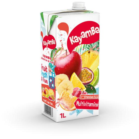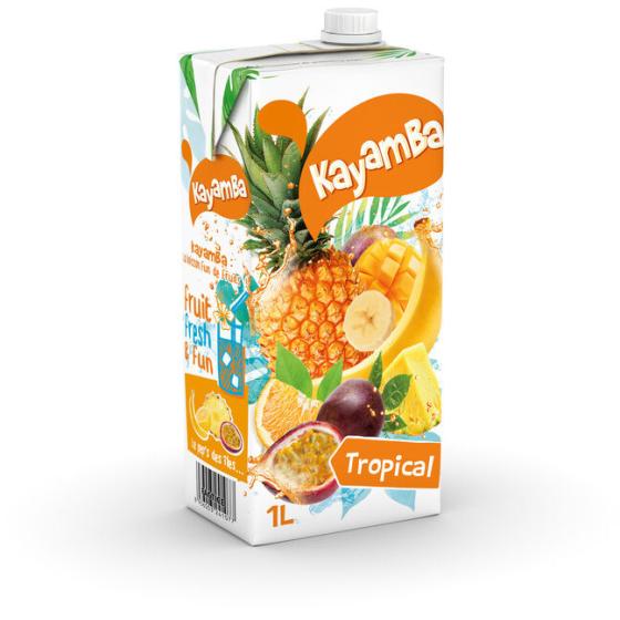 Jus à base de concentrés et purées de : pomme, orange, banane, mangue, pêche, ananas, fruit de la passion, citron, carotte, abricot, kiwi,