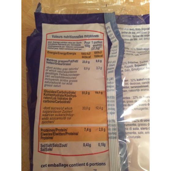 GUFRETTE ENROBEE ET FOURREE CREME GOUT CHOCOLAT - Ingrédients tarine de blé, suCre, grasses végätales (palmiste, palme, coprab), cacao en poudre lactoséruin, lat en poudre, émusient (ecthine de sca E322, agents de leve bartonat de sodum carborae de magnésium), sel, ardmes identiques nature (vanile, chocolat), corcteur dacidité (acide citrique). Content blé, gluten, lat, soja. Peut contenir. Frut a coque ceuf A consever au trais et au sec