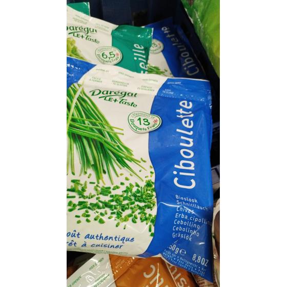 Ciboulette (95%), huile végétales (huile de tournesol et de colza)