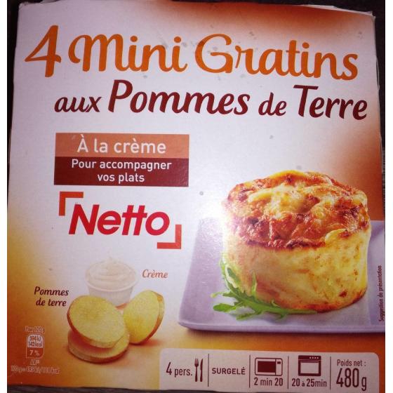 Pommes de terre 52%, eau, crème fraîche** 13,5%, emmental** 6,1%, farine de blé, ail, œufs entiers, sel, amidon transformé de maïs, poivre, muscade. **dont lait.
