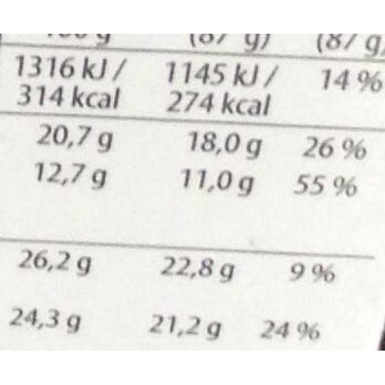 Lait écrémé réhydraté, sucre, eau, graisses et huiles végétales (noix de coco, tournesol, soja), farine de blé, sirop de glucose, lactose et protéines de lait, noisettes (3,5%), cacao maigre en poudre, émulsifiants (mono - et diglycérides d'acides gras", lécithines (soja)), gélifiants (farine de graines de caroube, gomme guar), sirop de sucre caramélisé, arôme naturel de sel, naturel de arôme naturel. 8% de dans la au praliné, de noisette dans la sauce à la noisette