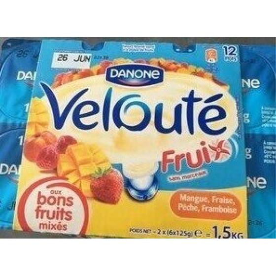 Ingredients: Lait entier (Origine France), sucre (9,7% en moyenne), fruits (5,6%) (abricot, mirabelle, pêche), lait écrémé concentré ou en poudre (Origine UE), crème (lait) (Origine France), épaississants (amidons transformés, amidon transformé (dans variété abricot), gomme guar (dans variétés abricot et pêche), carraghénanes), sirop de glucose-fructose (0,6%) (dans variétés abricot et pêche), arômes, ferments lactiques (lait), colorants (extrait de paprika, riboflavine) (dans variétés abricot et pêche), correcteurs d'acidité (acide ascorbique (dans variété mirabelle), acide citrique, citrate de sodium).