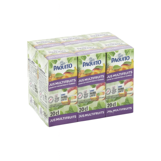 Jus à base de jus concentrés et purées : pomme (66%), goyave (11%), ananas (6%), poire, papaye (4%), mangue, pêche, fruit de la passion, antioxydant : acide ascorbique.