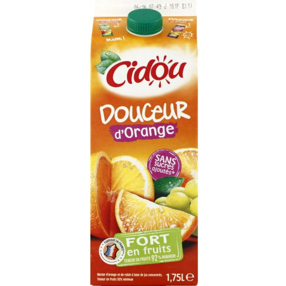 Jus à base de jus concentrés : orange (55%), pomme, poire, antioxydant : acide ascorbique.