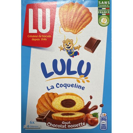 Biscuit: Farine de BLÉ 51,6%*, sucre, huile de tournesol, OEUFS, LAIT en poudre écrémé, LAIT entier pasteurisé, sel, poudres à lever (carbonate acide de sodium, tartrate monopotassique, carbonate acide d'ammonium), amidon de BLÉ, arôme. Fourrage aux NOISETTES et au cacao 28%*: sucre, graisses et huiles végétales (karité, tournesol), NOISETTES 7,1%*, cacao 2,6%*, LAIT en poudre écrémé, amidon de BLÉ, arôme. *% exprimé sur le produit fini. Peut contenir des traces d'autres FRUITS A COQUE, MOUTARDE et SOJA.