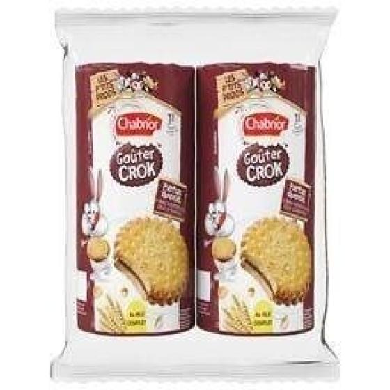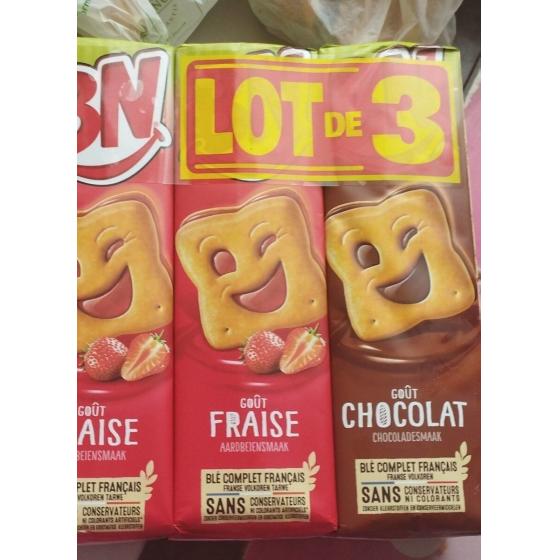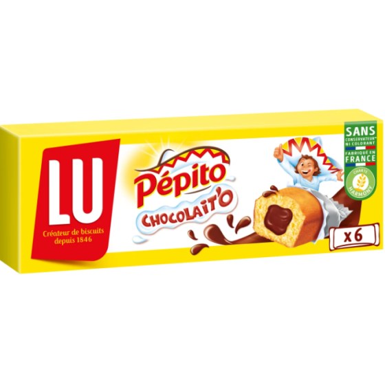 Sirop de glucose-fructose, farine de blé 34%, purée de framboises 18%, sucre, amidon de blé, lactosérum en poudre (de lait), huile de colza, jaunes d'oeufs en poudre, correcteur d'acidité (acide citrique), arômes, gélifiant (pectines), jus de carotte noire concentrée, émulsifiant (lécithines de soja), poudre à lever (carbonates de sodium), levure sèche,
