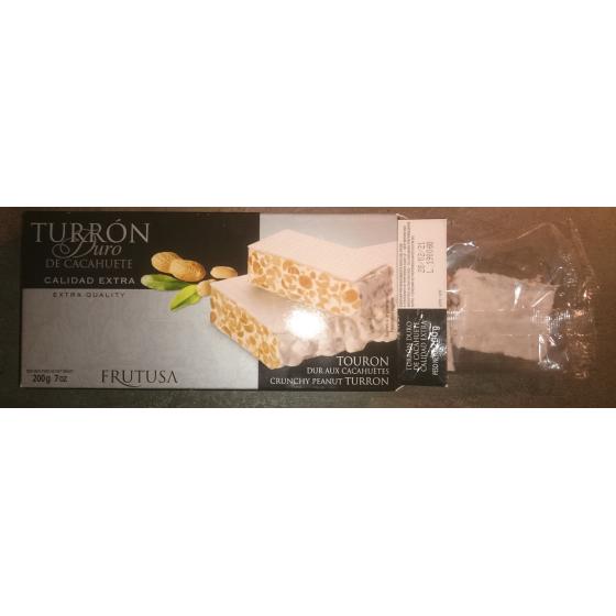 Ingrédients:Cacahuètes (51%), sucre, sirop de glucose et fructose, gaufrette (fécule de pomme de terre et huile de tournesol) et blanc d'oeuf. Contient cacahuètes et oeuf. Peut contenir des traces de noix, lait, soja, gluten et sulfites.
