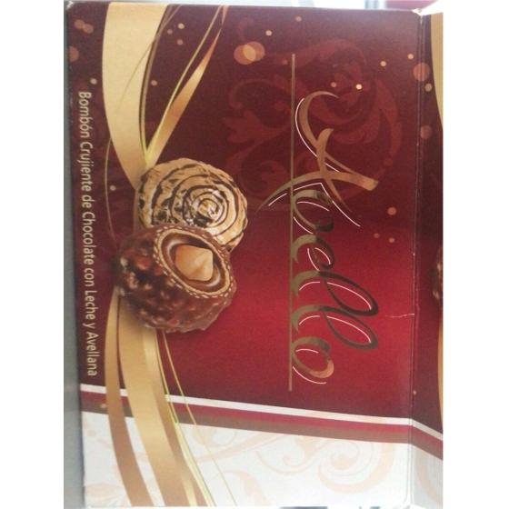 Ingrédients:Sucre, beurre de cacao, lait écrémé en poudre, pâte de cacao, lactosérum en poudre, beurre concentré, émulsifiant (lécithines de soja), pâte de noisettes, arôme.