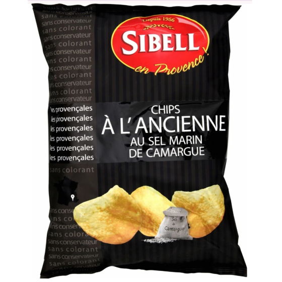 Ingrédients:Pommes de terre (61,8%), huile de tournesol (37%), sel marin de Camargue (1,2%),