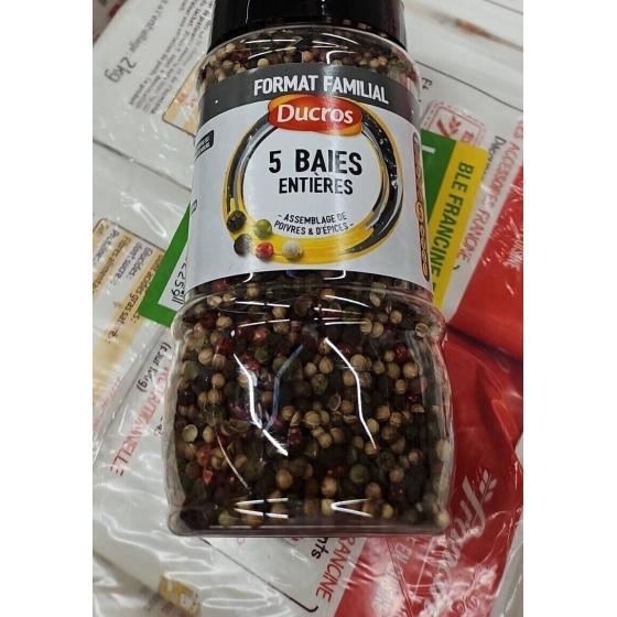 Ingrédients:Poivre noir, graines de coriandre, baies roses, poivre blanc, piment de la Jamaïque ,poivre vert.