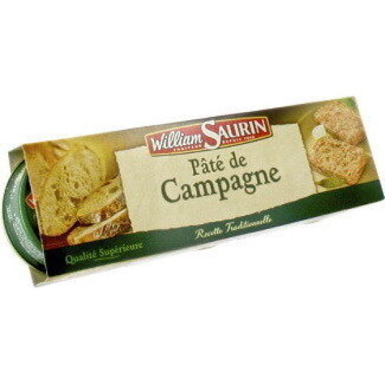 Gras de porc, foie de porc 25%, eau, couenne de porc, lait demi-écrémé, farine de blé, sel, gélatine de porc, crème (lait) 0,8%, oignons, arômes naturels, sucre, amidon de maïs, œufs, poivre, coriandre, ferments, thym, colorant : caramel ordinaire. Contient gluten, lait et dérivés, œufs. *L'action des ferments génère l'apparition de nitrites d'origine naturelle pour préserver toutes les qualités du produit.