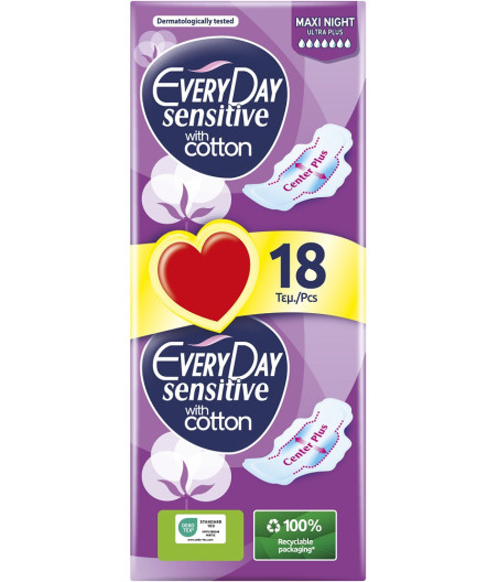 SERVIETTE HYGIÉNIQUE SENSITIVE MAXI NIGHT ULTRA PLUS EVERYDAY X18